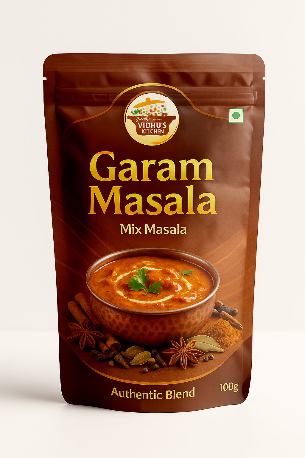 Add rich aroma and authentic flavour to your dishes with Vidhu’s Kitchen Premium Garam Masala. This traditional spice blend is made from carefully selected whole spices that are roasted and finely ground to give your food a warm, bold, and balanced taste.
