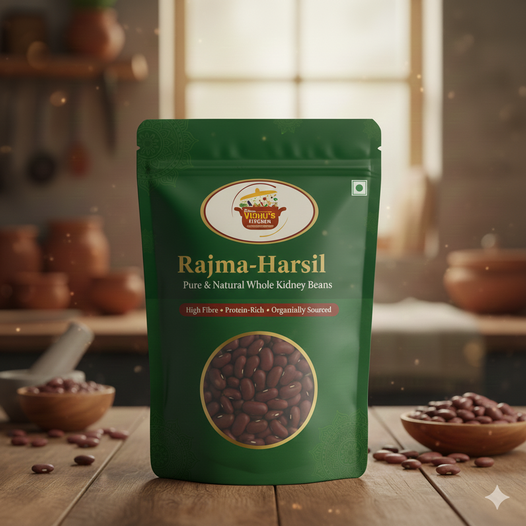 Enjoy the rich quality and natural taste of Harsil Rajma from Vidhus Kitchen Premium. These carefully selected white kidney beans are hygienically cleaned and packed to give you premium texture, taste, and nutrition.